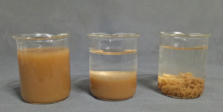 3、用移液管分別移取1‰的聚丙烯酰胺溶液0.5ml按順序投加到生化出水的水樣中(折算成含量1‰的聚丙烯酰胺溶液投加量為1mg/L);攪拌15S后,靜置30min。